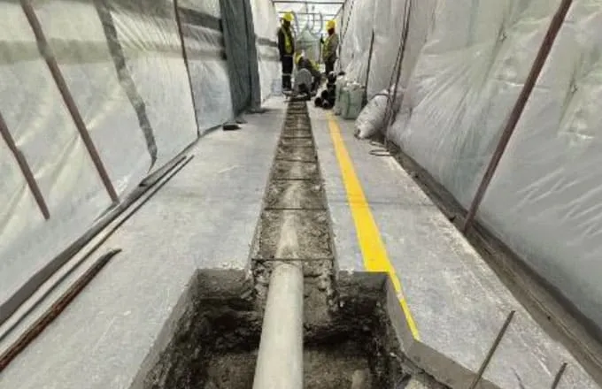 Instalación de drenajes en proceso, baños y exteriores de planta.
